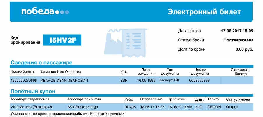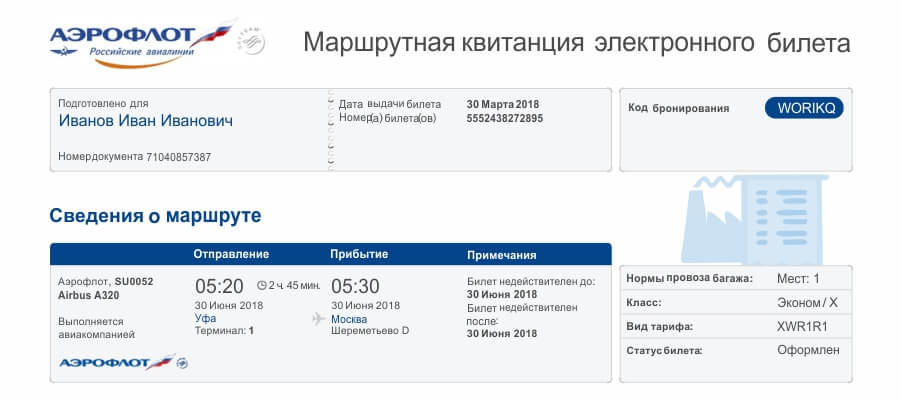 электронный авиа билет